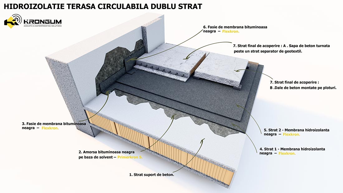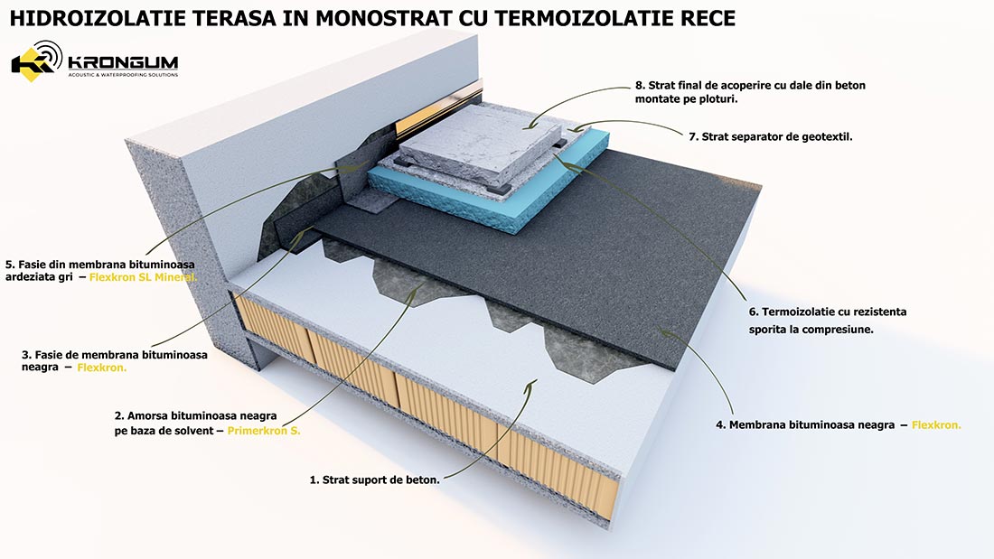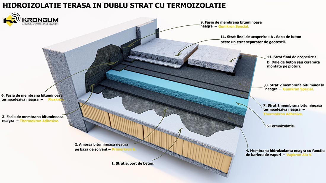 Membrană bituminoasă elastomerică pentru lucrări de hidroizolație la fundații și acoperisuri.
